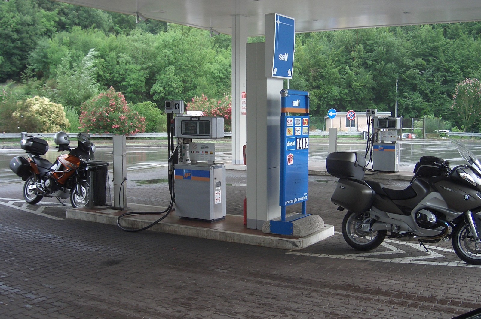 El Italiano de la gasolinera, se puso muy nervioso al ver que se había llenado la gasolinera de motos al resguardo de la marquesina. Y de una forma poco educada nos indicó que aparcáramos en la zona donde repostan los camiones... Así lo hicimos.